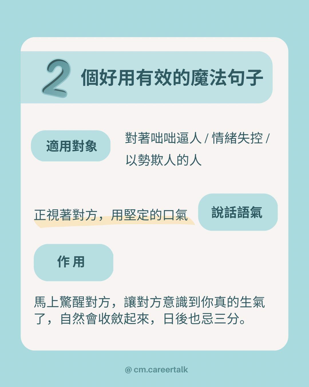 - 告知對方「你踩到我底線了,我不是好欺負的」
