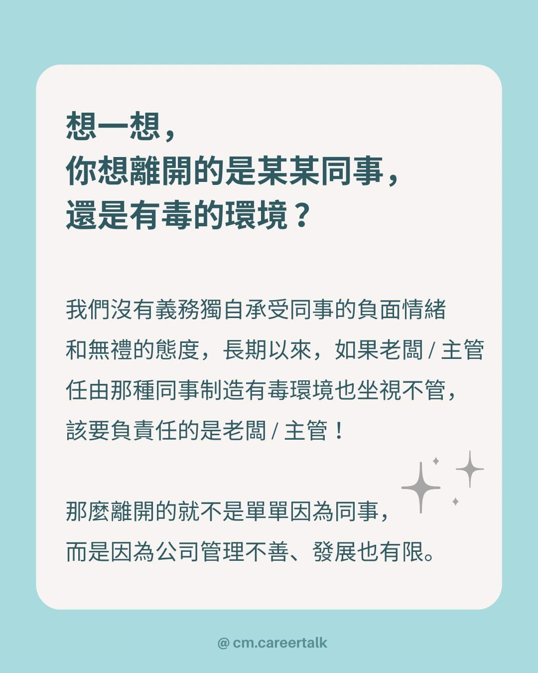 本文由 cm.careertalk 授權轉載, 原文: 《你離開的不是爛同事而是有毒公司 2個魔法句子擊退爛同事》