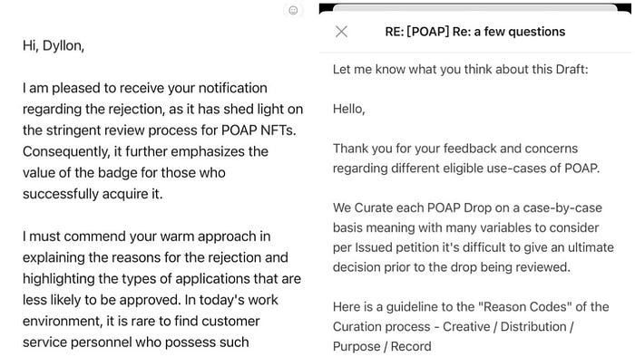 附註說明:POAP徽章,是出席證明協議( Proof of Attendance Protocol )的縮寫,從 2019 年的黑客松期間創立,它的設定是「用區塊鏈紀錄生活經驗的徽章」。POAP徽章申請,從來都不是一件容易的事情,你必須相當清楚它的程序、文件規章要求,否則被退件的機率是99%
